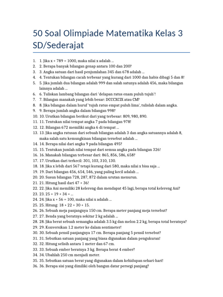 Olimpiade Sains Nasional (OSN) untuk jenjang Sekolah Dasar (SD) merupakan ajang bergengsi yang menantang para siswa untuk menunjukkan kemampuan mereka dalam bidang sains. Bagi siswa kelas 3 SD, tantangan ini menjadi langkah awal yang menarik untuk menumbuhkan kecintaan pada ilmu pengetahuan alam (IPA). Soal-soal IPA Olimpiade SD kelas 3 dirancang untuk mengukur pemahaman konseptual, kemampuan observasi, penalaran logis, dan kreativitas siswa dalam menghadapi berbagai fenomena alam yang sering mereka temui dalam kehidupan sehari-hari.